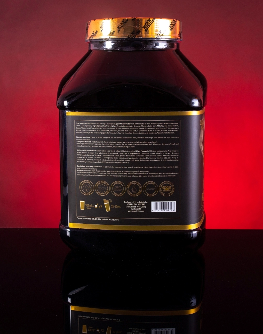 Mod de administrare | Se amesteca 2 masuri ( 90 g) din produs Mass Power cu 300 ml apa sau lapte. A se utiliza un shaker sau un blender. |