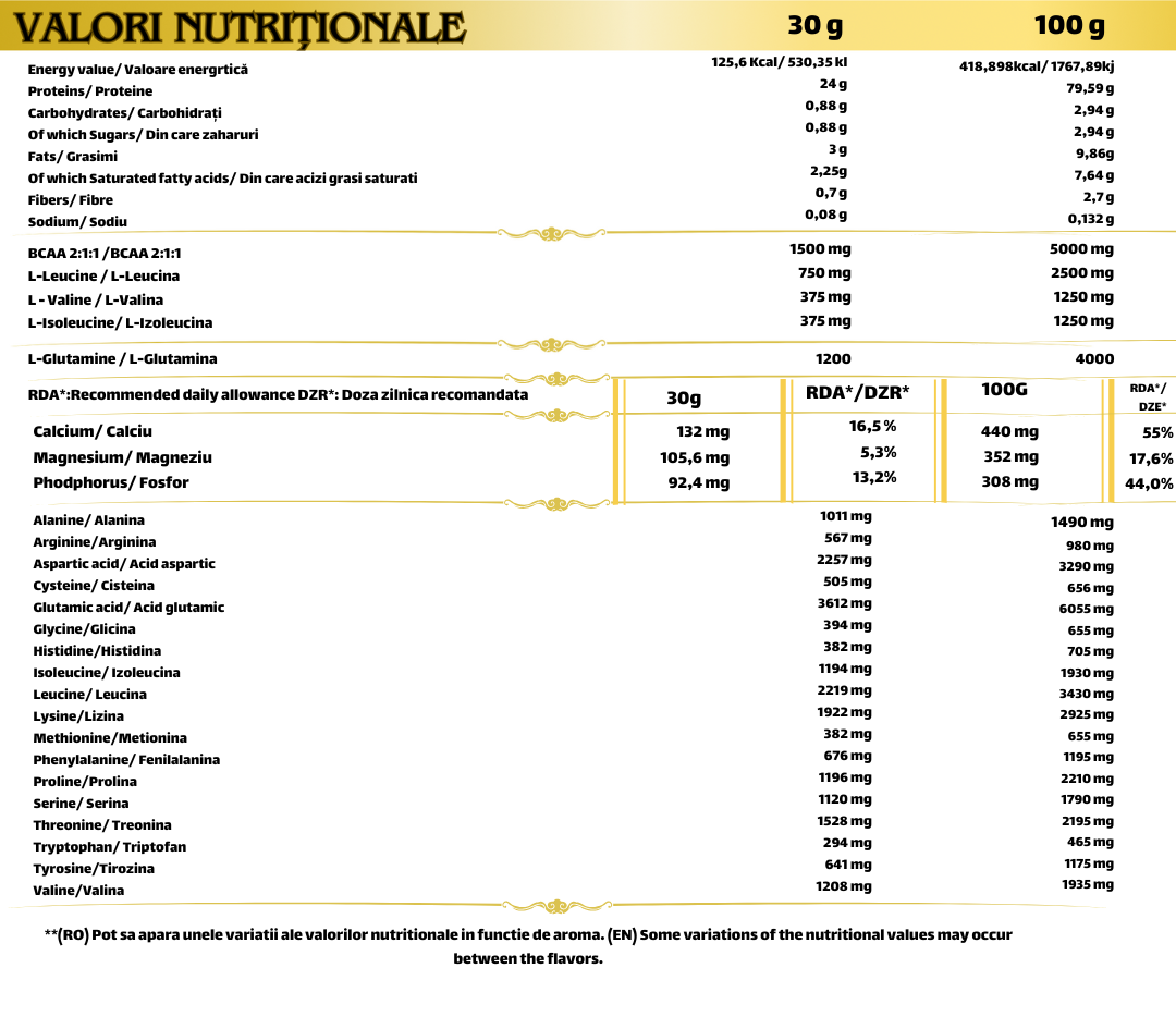 **(RO) Pot sa apara unele variatii ale valorilor nutritionale in functie de aroma. (EN) Some variations of the nutritional values may occur between the flavors. | |||||||||||